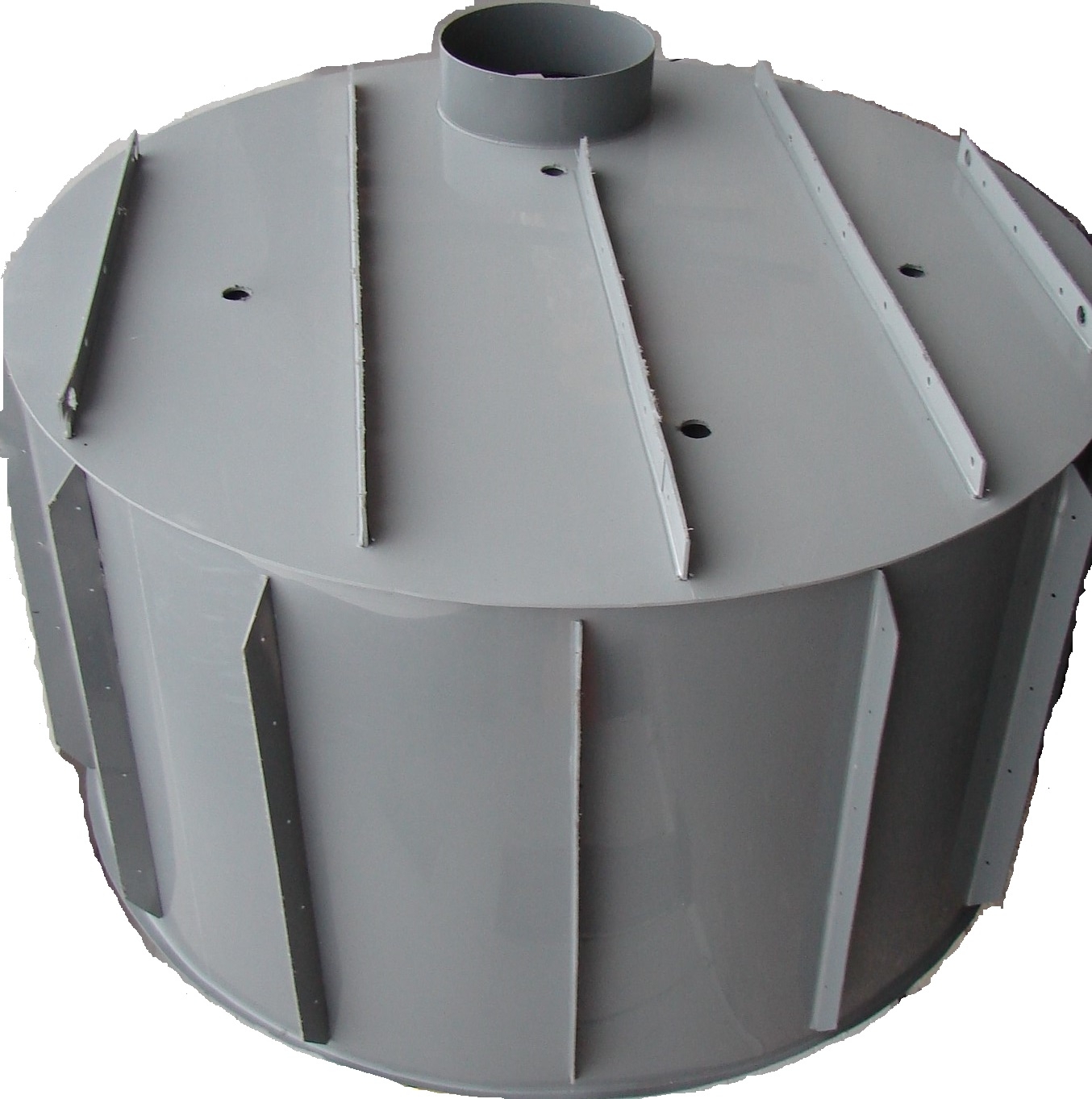 Tato jímka je vhodná pro použití při vyšším zatížením např. pojezedem automobilů. Jímka k obetonování má objem 10m3 a je vyrobena z certifikovaných PP desek. Je možné ji využít jako plastový septik a proto je osazen přítokovým a odtokovým potrubím dle požadavku zákazníka. V případě potřeby je možné ji upravit na použití čerpadla např. pro dešťovou vodu. Žebrování jímky je provedeno zvenku nádrže. Víko plastové samonosné jímky je pochozí, tloušťka víka je 8mm.